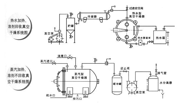 注:如采用冷凝器,物料中的溶劑可通過冷凝器加以回收;如采用SK系列水環(huán)真空泵或ZS WJ系列水力噴射真空泵機(jī)組,可不用冷凝器,節(jié)省能源投資。